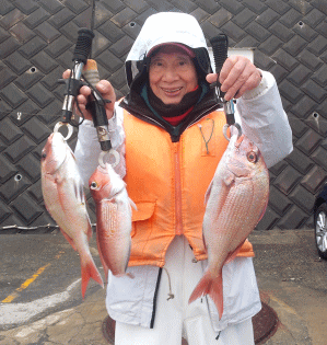 | お日様お昼過ぎに少しあったのみで 北系の風も前半強く気温は5℃と 寒~い一日となりました お帰りになりましたら温まって ゆっくりお休みください 本日の乗船ありがとうございました ※ インフルエンザ・風邪の流行で 予約後のキャンセルが多くなっています 体調等良く無ければ遠慮なくお伝えください マスク、外出後のうがい、手洗い 予防が大事です 本日のLT五目船 アマダイ43cm ![]() 明日22日(木)は 定休日でお休みとなりまっす 明後日23日(金)は 一日晴れマークで風も北系が弱く 気温も7℃台迄伸び 穏やかな良い陽気となりそうです ●LT五目 ●カワハギ が 出船予定ですので 釣行よろしくお願いします 気象協会 (佐島マリーナー付近) ( 21日16時発表)
