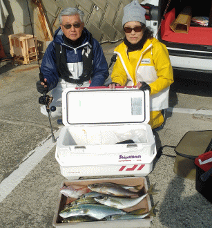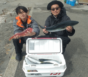 | 晴れで北系の風ありましたが 気温は15℃近く迄上がり 過ごし易い陽気となりました 本日の乗船ありがとうございます ※ インフルエンザ・風邪の流行で 予約後のキャンセルが多くなっています 体調等良く無ければ遠慮なくお伝えください マスク、外出後のうがい、手洗い 予防が大事です 15日(日)のLTヒラメ船 やりました!! ヒラメ4.60㎏ ![]() 13日(金)のLTヒラメ船 ヒラメ1.40㎏とワラサ5.20㎏ ヒラメ1.60㎏ ![]() ![]() 11日(水)のLTヒラメ船 超珍しいヤイトハタ・2.80㎏ 図鑑では究極の美味と・・・最高点でした ![]() 明日16(月)は 朝方雨が残りそうですが その後は曇り陽気 気温は二桁キープで 良い陽気となりそうです ●LT五目 ●LTヒラメ が 出船予定ですので 釣行よろしくお願いします 気象協会 (佐島マリーナー付近) (15日16時発表)